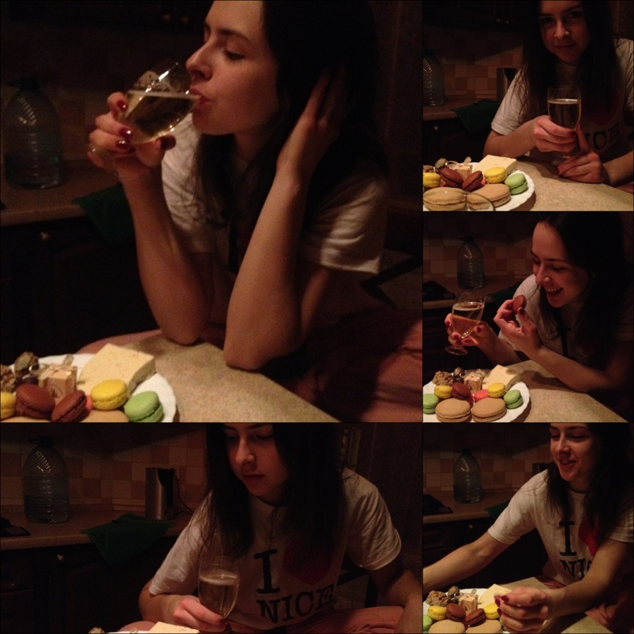 Осознав, что одними роллами мы не наелись и теперь, конечно же, хочется сладкого, мы решили не есть его здесь при наличии такого огромного выбора в различных кондитерских Львова. Поэтому мы отправились на поиски. Увидев родную «Поляну» по дороге, мы решили, что грех не запить сладкое шампанским, купили одну бутылочку и пошли дальше. Вспомнив о симпатичных макарони на витрине «Kredens Cafe» (кстати, именно то место, где Лена, впервые пойдя на разведку, резко открыла дверь, заорала: «Starbucks!», закрыла дверь и ушла, но это уже другая история), мы отправились покупать именно их. Дополнили мы наши любимые лакомства не менее любимым шоколадом и конфетами из уже знакомой «Львовской мастерской».