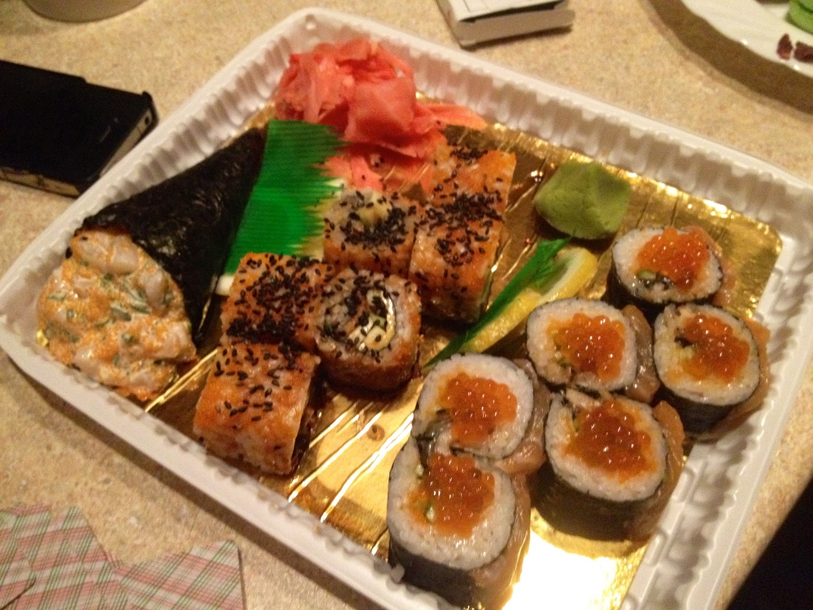 Перед тем, как пойти ужинать, мы планировали зайти в музей современного искусства, который находится прям рядом с «Япи». Совершенно случайно увидев меню и поняв, что это вроде как ресторан «Сало», мы заглянули в него и, по счастливой случайности, первое, что мы увидели, были мужские гениталии, сделанные из этого самого сала и окружённые солёными огурчиками. В общем, мы обрадовались, что увидели меню раньше, чем зашли внутрь, и просто отправились в любимый «Япи». Выбрав роллы из нового меню, мы стали ждать заказ. Стоит отметить, что сидели мы в vip-зале, на мягких диванах, на втором этаже возле огромных французских окон. Обстановка была потрясающая, если честно. И роллы порадовали безумно! Даже такие, как есть в Киеве, были гораздо вкуснее.